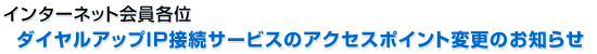 ダイヤルアップIP接続サービスのアクセスポイント変更内容およびダイヤルアップ接続の設定変更方法は下記を参照して頂きますようお願い申し上げます。